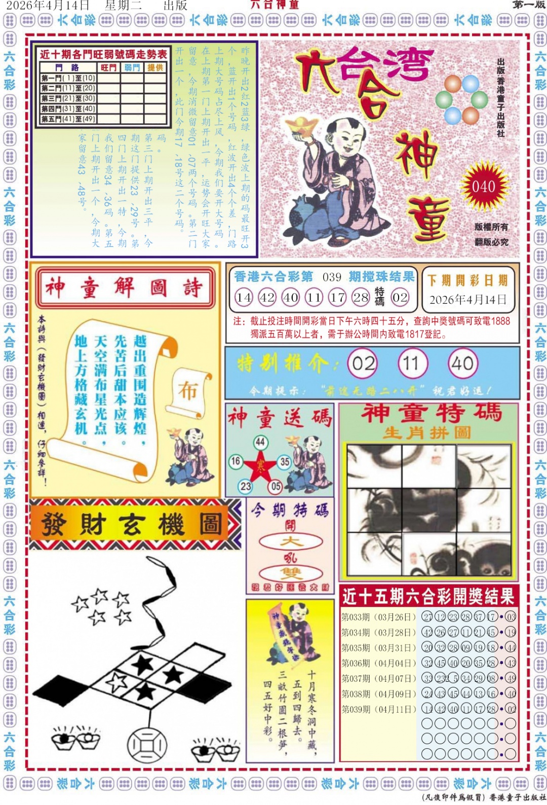 | 040期 | 虎猴 | 开:?00 |