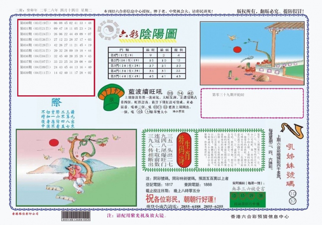 038期:特围36码---开:兔40准 |