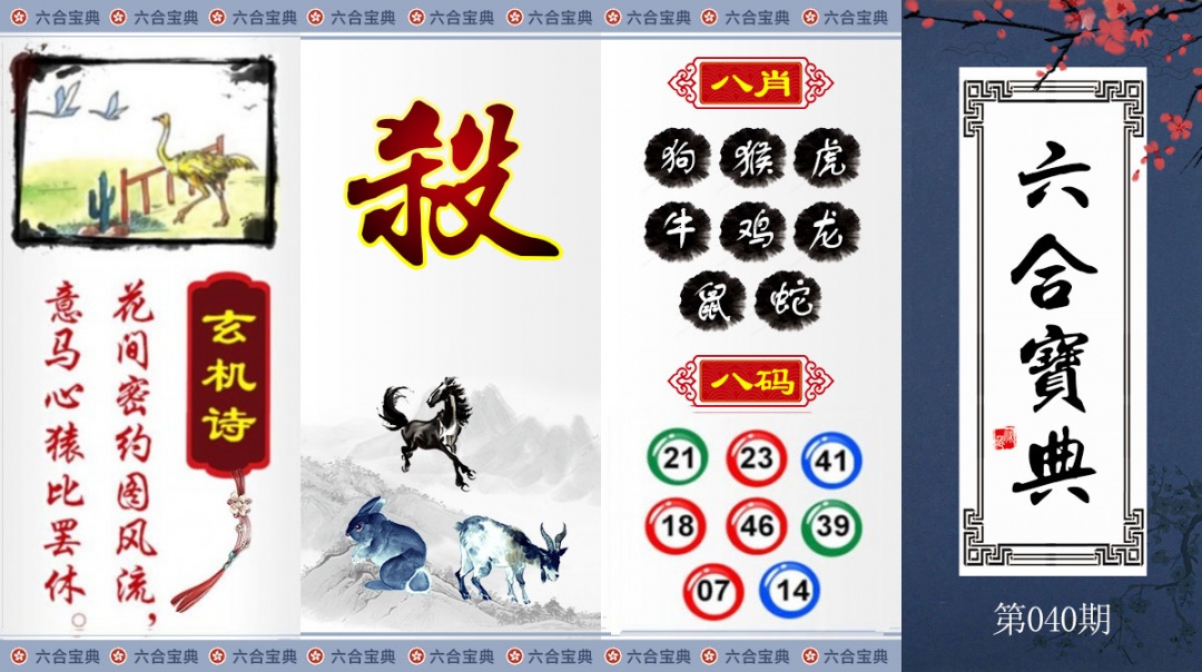 040期解四不像:春色红梅香万树。解鸡牛猪蛇猴狗马羊虎